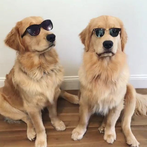 Wow, when our golden retriever wears sunglasses, it can be so cool.I think my baby golden retriever will like it so funny.